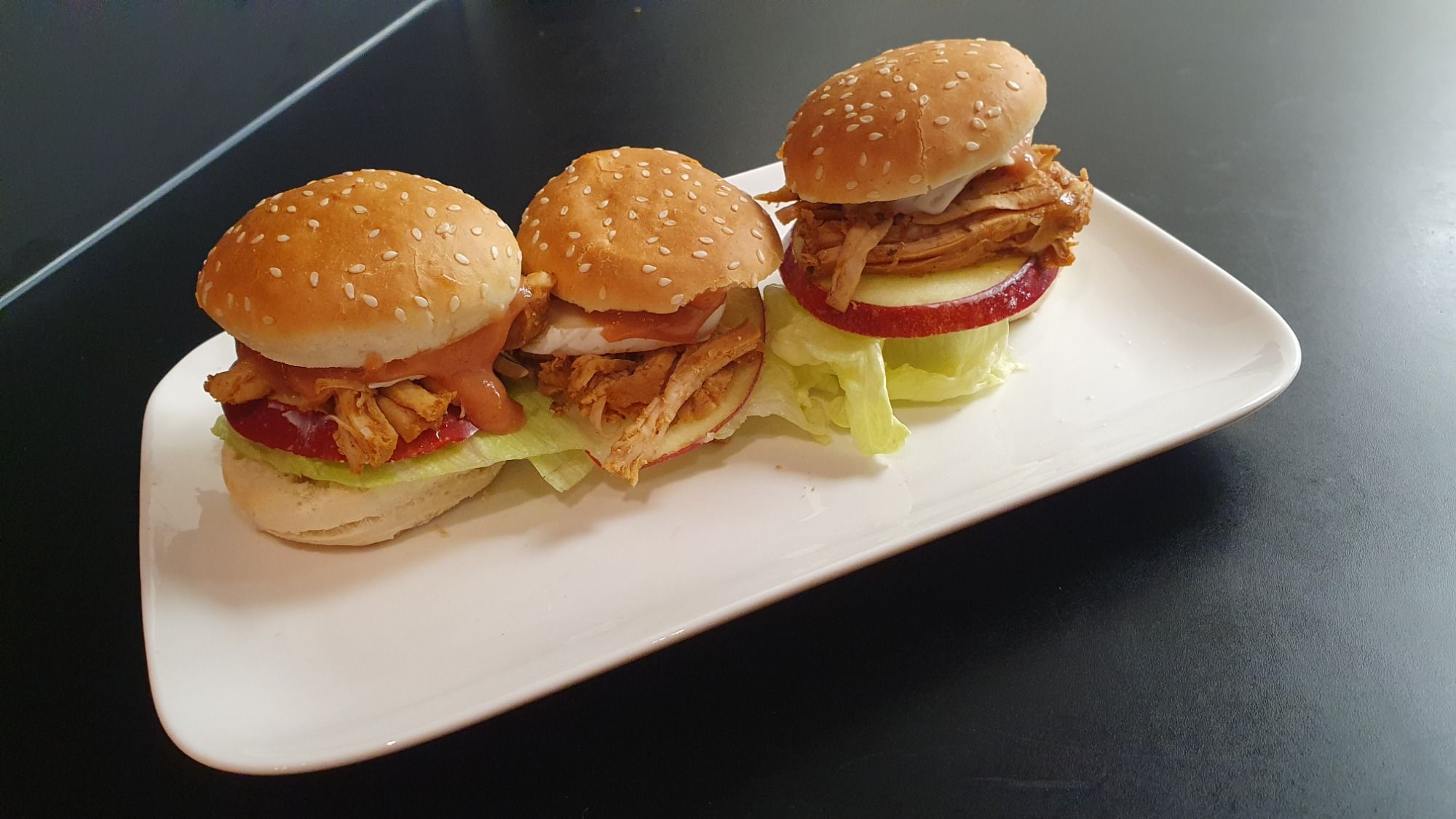 ofenfrisch gebacken, mit Karotten und hausgemachter Honigsenf-Sauce